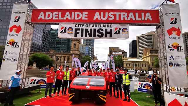 没有轰鸣的马达,只有兴奋的呐喊。10月18日,44辆太阳能车陆续穿过澳大利亚阿德莱德维多利亚广场内的终点线,标志着为期一周的2019世界太阳能车挑战赛(2019 World Solar Challenge)圆满落幕。