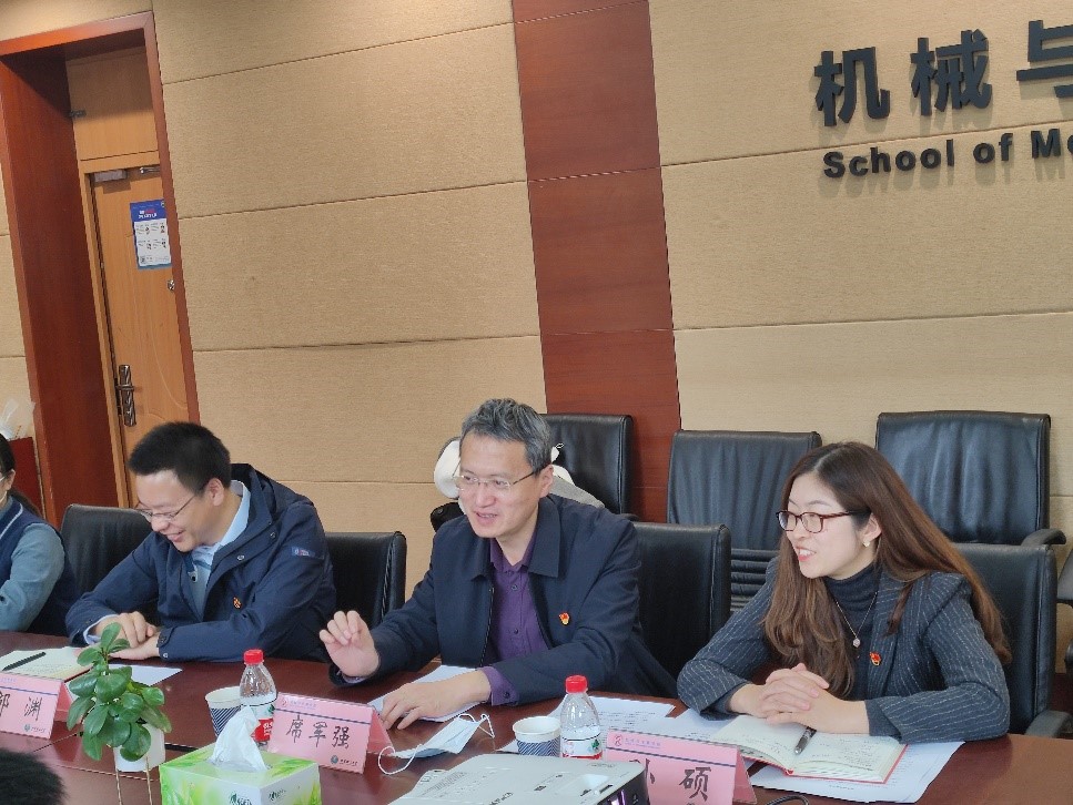 首先,席军强代表机械与车辆学院对航天四院四部周逸书记一行来进行党建工作交流表示欢迎,并介绍了机械与车辆学院的基本情况,同时对学生党支部和企业党支部联学共建的形式表示了肯定,对用好党建共建交流学习平台、加强支部建设共同提高表示鼓励与支持。