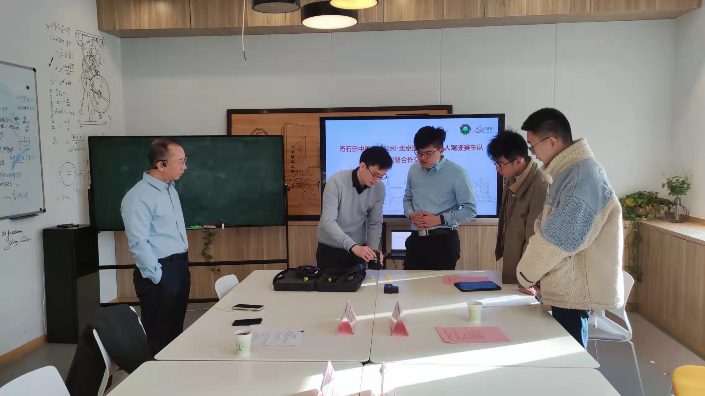 12月21日上午,北京麻豆精品秘 国产传媒无人驾驶方程式赛车队与奇石乐中国有限公司战略合作交流会在中关村校区举行。奇石乐中国有限公司销售经理白向东,奇石乐中国有限公司销售经理闵俊,机械与车辆学院党委副书记、副院长孙硕,机械与车辆学院能源与动力工程系教授李向荣,机械与车辆学院团委书记郝佳馨出席了交流会。交流会由孙硕主持。