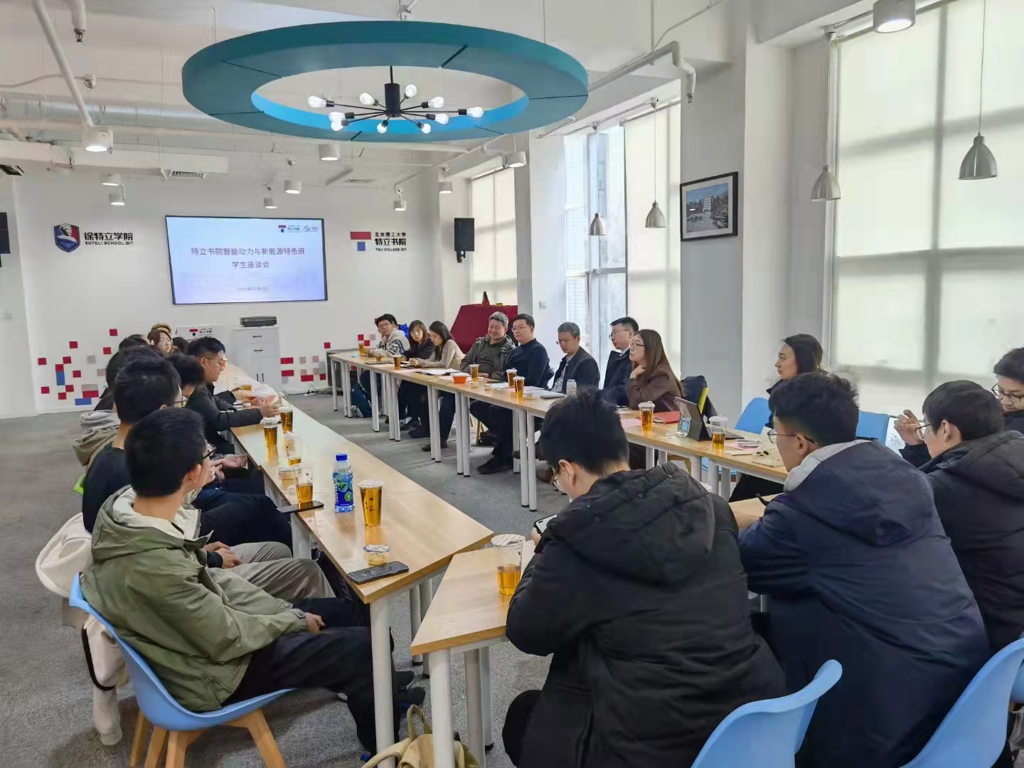 上午11时于至善园A106召开了特立书院智能动力与新能源特色班学生座谈会,徐特立学院、未来精工技术学院常务副院长冯慧华、徐特立学院副院长赵昊、学工办主任聂宁宁、辅导员王铭伟及智能动力与新能源特色班全体学生参会。参会学生就培养计划、专业设置、课程学习、个人发展等方面与参会的领导进行了充分的沟通交流。