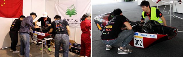 赛车漂洋过海来到异国赛道,显得有些水土不服,赛程一开始就经历了轮胎爆胎、传动齿轮松动等意外,险些导致难以完赛,再加上恶劣的赛道条件和炎热天气,这次的奖杯更显得来之不易。北理工代表队的队员们各司其职、顽强拼搏,在困难面前绝不轻言放弃,尤其是在这样高温和恶劣工况下连续长时间驾驶的女车手,也依然一丝不苟地刷新着每一圈的成绩。在队员们与指导老师共同的努力下,赛车在正式赛中成绩稳步提升,最终成功地完成了全部比赛。