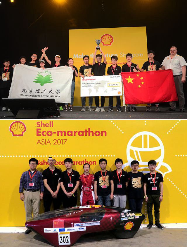 3月19日下午,2017年第八届亚洲壳牌节能马拉松赛在新加坡圆满落幕,来自亚洲、非洲和澳大利亚等20个国家的123支队伍在新加坡樟宜展览中心展开激烈角逐。北理工节能车俱乐部选派的BIT Econopower车队在指导教师宋强的带领下以427KM/KWH的优异纪录,获得了原型车纯电动组亚军,在这一赛事中连续两年斩获好成绩。